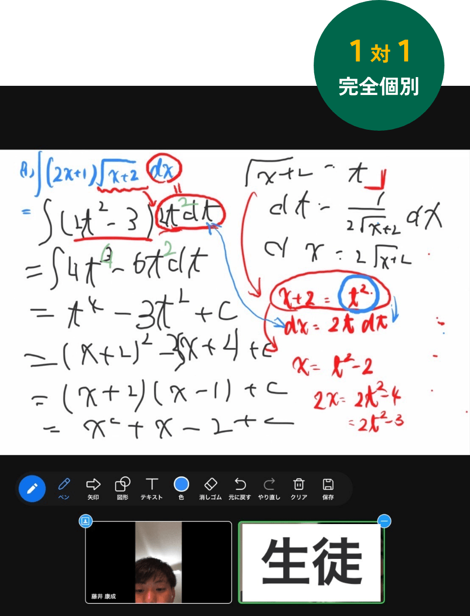 講師はペンタブを活用して授業を行うため、オンラインでも対面と変わらないわかりやすさです。
